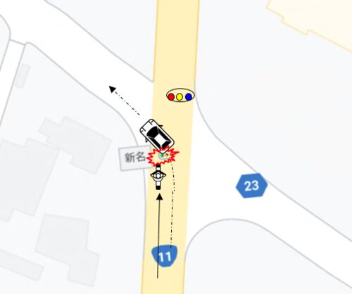 niu U での通勤途上 発生日時:2020年8月24日 午前8時 出勤途中、交差点を直進中、軽四輪が交差点手前で、私を追い越し左折した。 衝突を避けるため急ブレーキをかけたところ転倒し、負傷した。 通常、左折巻き込み事故は左折車両が先に交差点に進入…