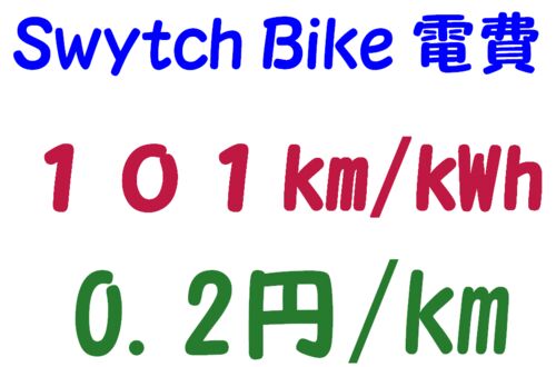 ※電費-整数切り捨て、走行単価-少数1桁切り上げ 電動アシスト化キットSwytch Bikeを装着した俺専自転車の燃費に相当する電気代を記録していきます。 7月分 走行距離(a):11km 充電量(b):0.1kWh 電気消費率(a÷b):110.0km/kWh 消費単価…