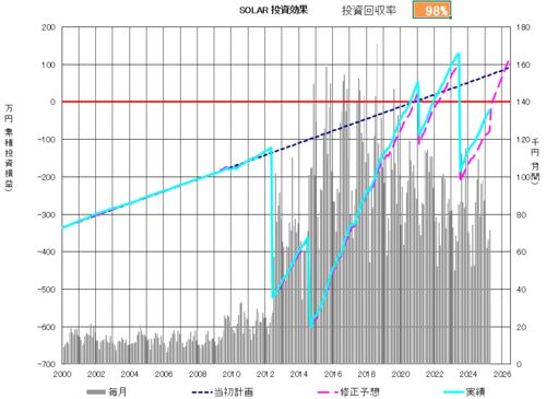 2000年に屋根太陽光を設置して22年 2013年に五十鈴の丘発電所運転開始 2021年に蓄電池導入 ようやく、我が家におけるSOLAR投資回収 2022年9月 完結しました。今後は、EV+V2H 導入に向けて資金を貯める計画リスタート2024年4月にEV…