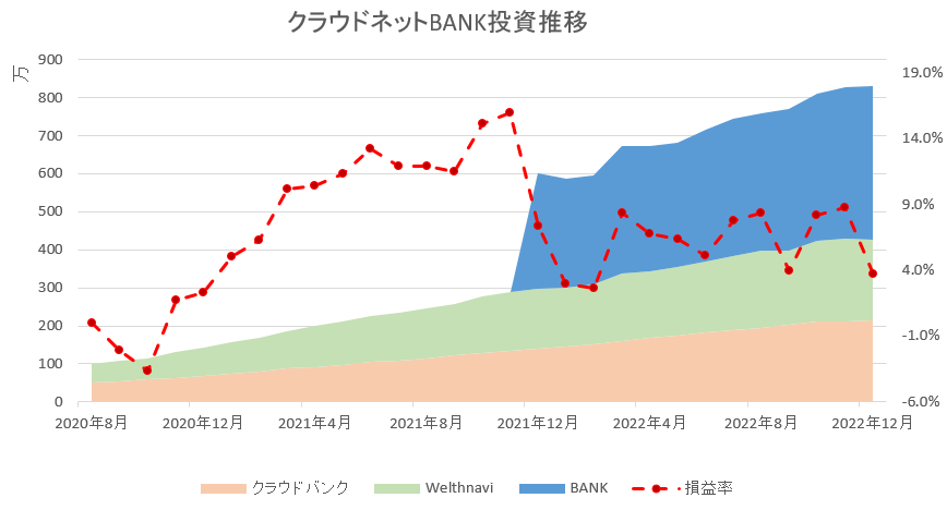 ウェルスナビ(自動積立)とクラウドバンク(手動積立)に、それぞれ同額の積立投資を始めたので、比較していきます。さらに、あおぞら銀行BANK支店にも追加しました。