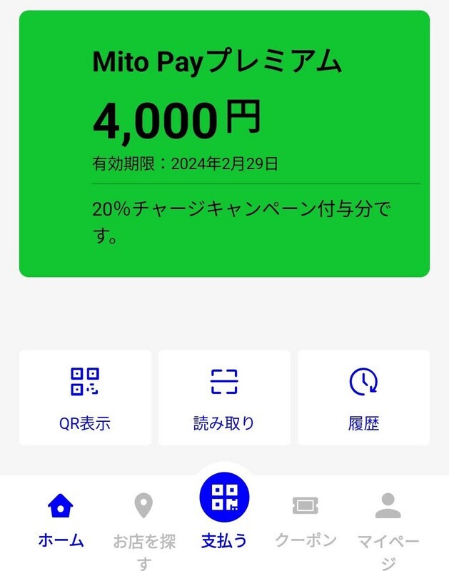 還元率20%キャンペーンは、4000ポイントだが、通常利用で1%ポイント還元はありますので、他の電子決済同様1%還元対象マネーです。